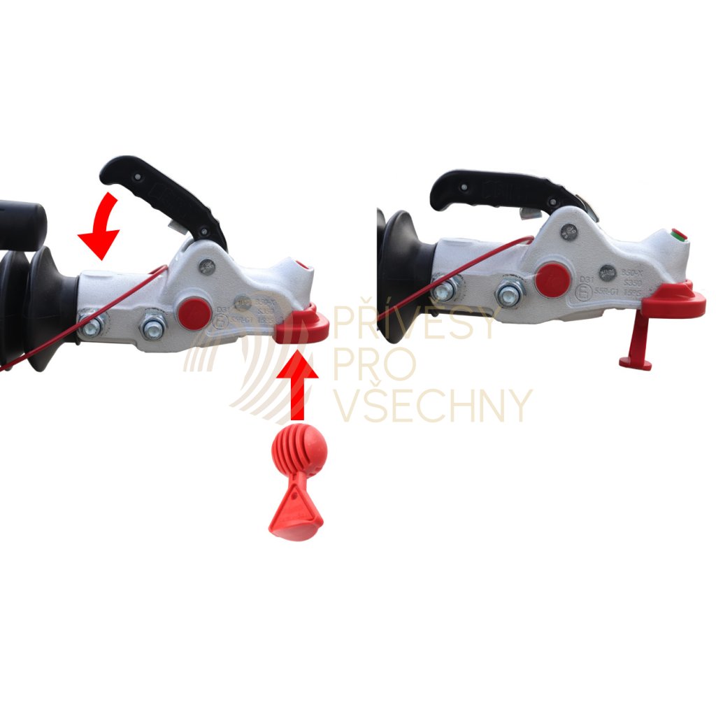 Bezpečnostní vložka zabrání připojení uzamčené tažné spojky na nestandardní (menší) kulové čepy. Usnadňuje také "zacvaknutí" tažné spojky nepřipojeného přívěsu (např. před uzamykáním).