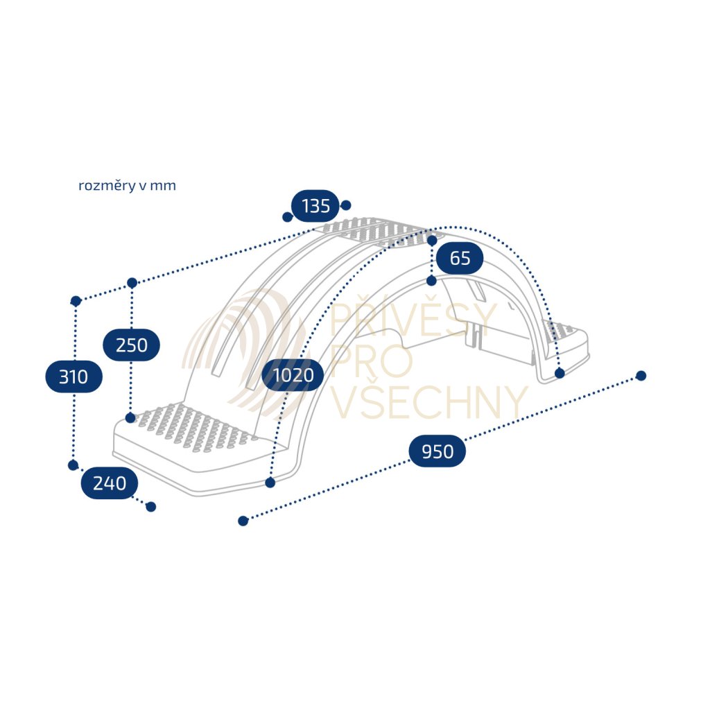 - Vhodný pro montáž na levou i pravou stranu přívěsu - blatník je symetrický, pro montáž na opačnou stranu přívěsu stačí blatník otočit.