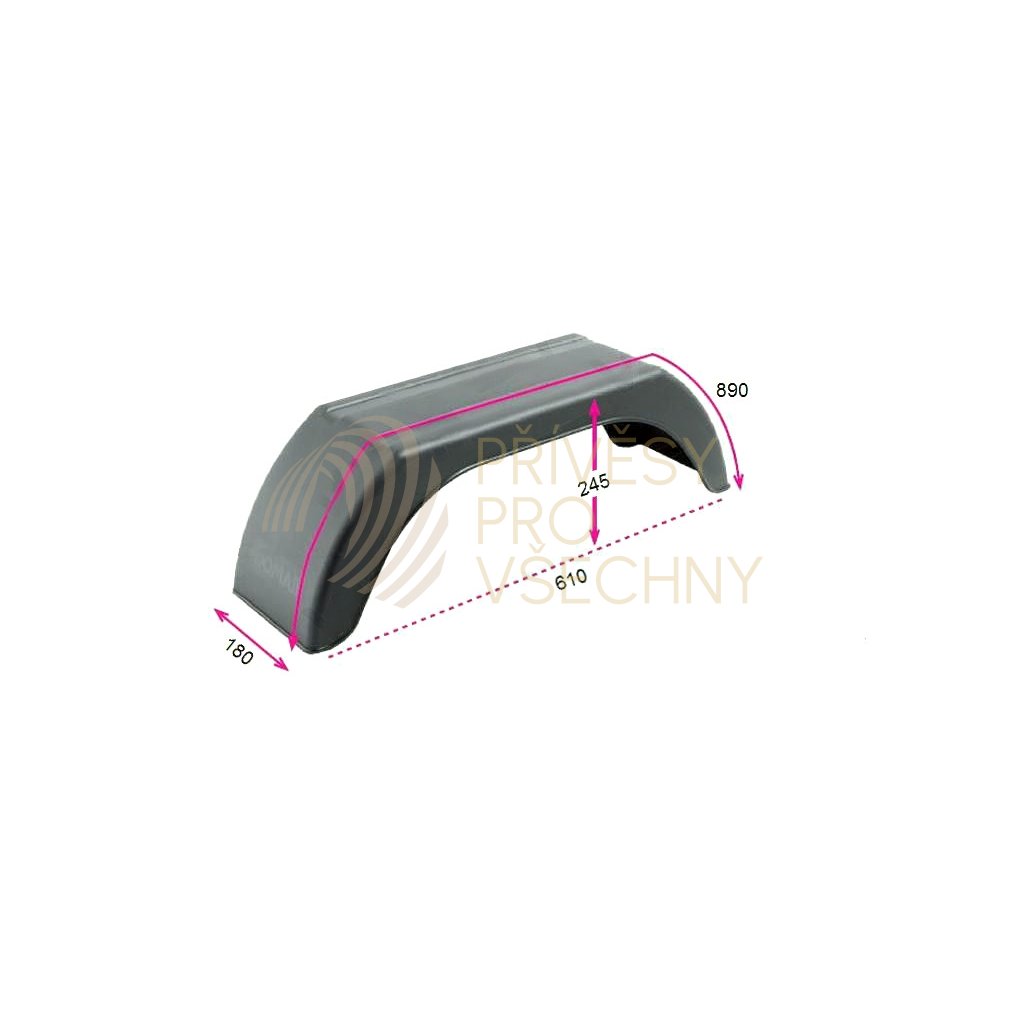 Blatník je dodáván nevrtaný. Je symetrický podle příčné osy, takže je možné ho použít na pravou i levou stranu přívěsu. Horní rovná plocha blatníku usnadňuje usazení např. těsně pod podlahu přívěsu. Díky velmi pěknému povrchu je blatník vhodný i pro montáž na přívěsy s koly vedle ložné plochy, kde vkusně dotvoří celkový vzhled přívěsu.