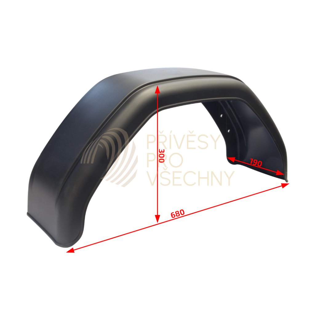 Blatník je symetrický podél příčné osy, t.j. lze ho použít na pravou i levou stranu přívěsu. V boční straně blatníku jsou předlisované 3 otvory pr. 10 mm a 6 otvorů pr. 8 mm pro uchycení blatníku.