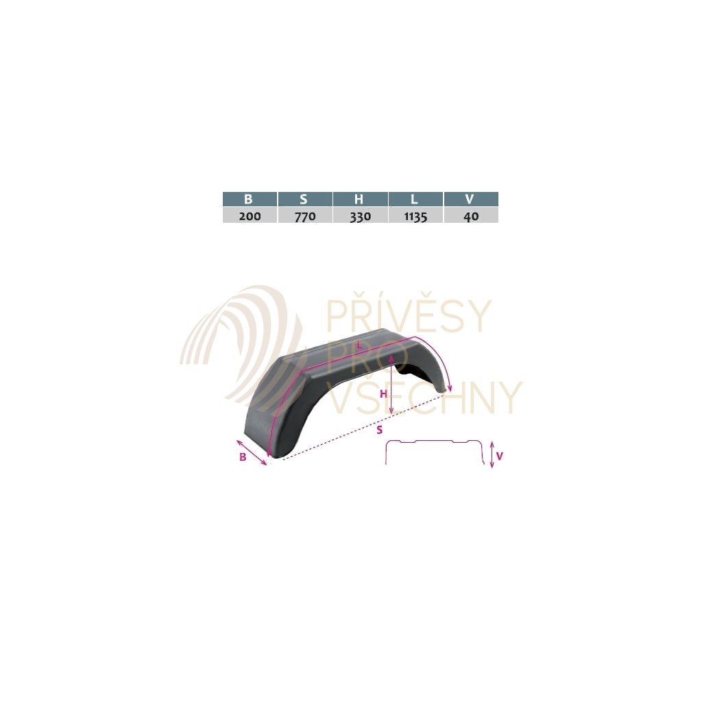 Blatník je dodáván nevrtaný. Je symetrický podle příčné osy, takže je možné ho použít na pravou i levou stranu přívěsu. Horní rovná plocha blatníku usnadňuje usazení např. těsně pod podlahu přívěsu. Díky velmi pěknému povrchu je blatník vhodný i pro montáž na přívěsy s koly vedle ložné plochy, kde vkusně dotvoří celkový vzhled přívěsu.