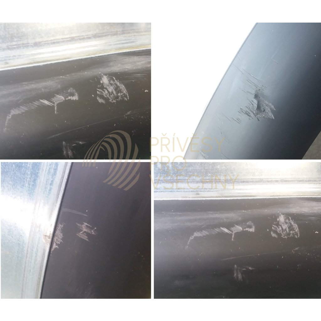 Plechový pozinkovaný tandemový blatník s vnějším měkkým gumovým lemem, vhodný pro 14 a 13 palcová kola.Blatník má vnější hranu vyrobenou z cca 60 mm širokého gumového lemu. Měkký vnější okraj tak lépe odolává drobným poškozením a nárazům.