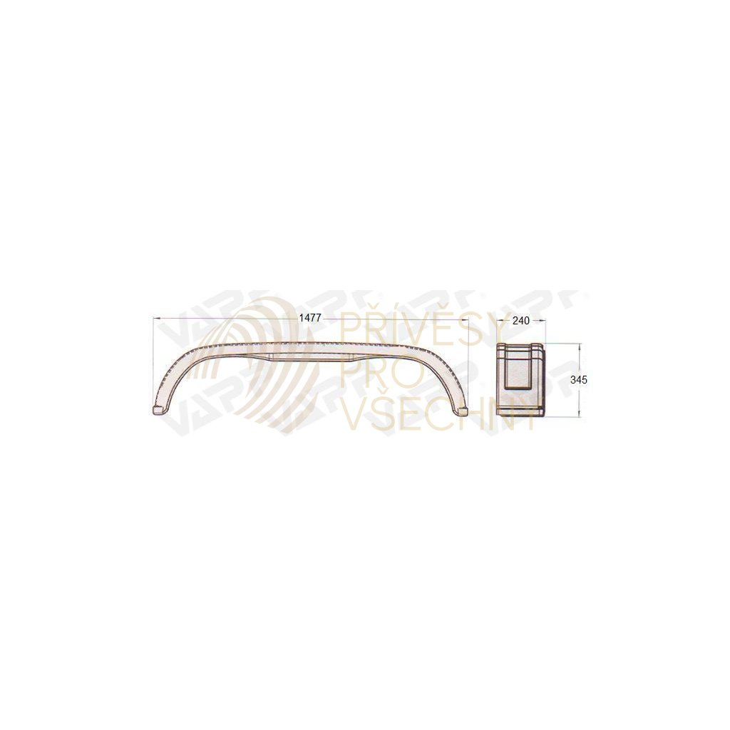 Široký tandemový plastový blatník délky 1477 mm a šířky 240 mm. Max. doporučený průměr kola: 670 mm. Blatník je použitelný na obě strany přívěsu - je symetrický podle příčné osy
