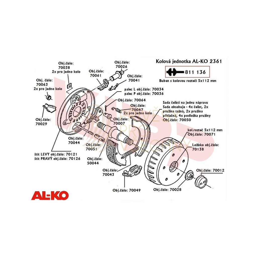 Čelisti brzdové AL-KO 2360/2361 malá sada 49 na 2 kola