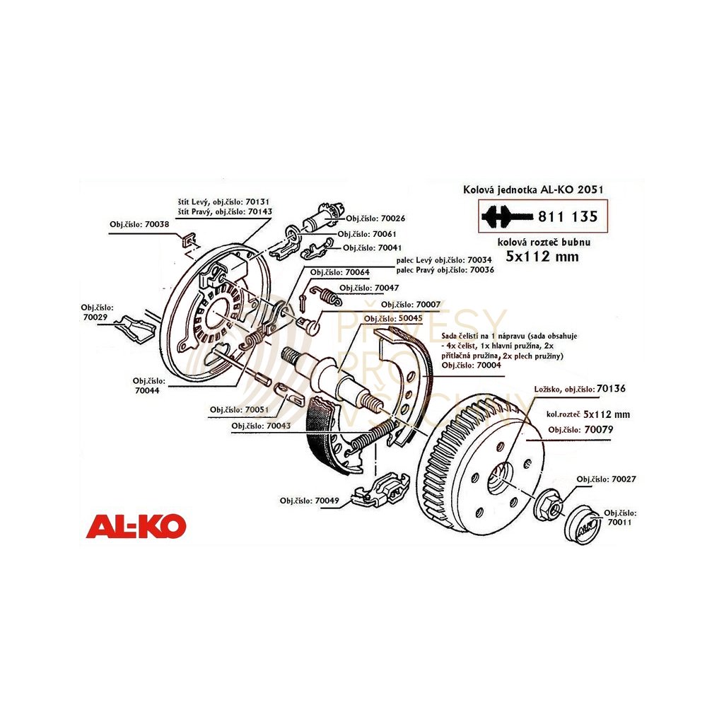 - Na středové krytce náboje kola najdete prolisované textové logo výrobce nápravy (KNOTT nebo AL-KO). Tyto čelisti jsou použité na nápravách AL-KO u přívěsů VAPP typy PAV 2.0 až PAV 2.6, PALV 2.0 až PALV 2.6, PV 2.0 až PV 2.6 a PVV 2.0 až PVV 2.6 včetně variant se sníženou celkovou hmotností.
