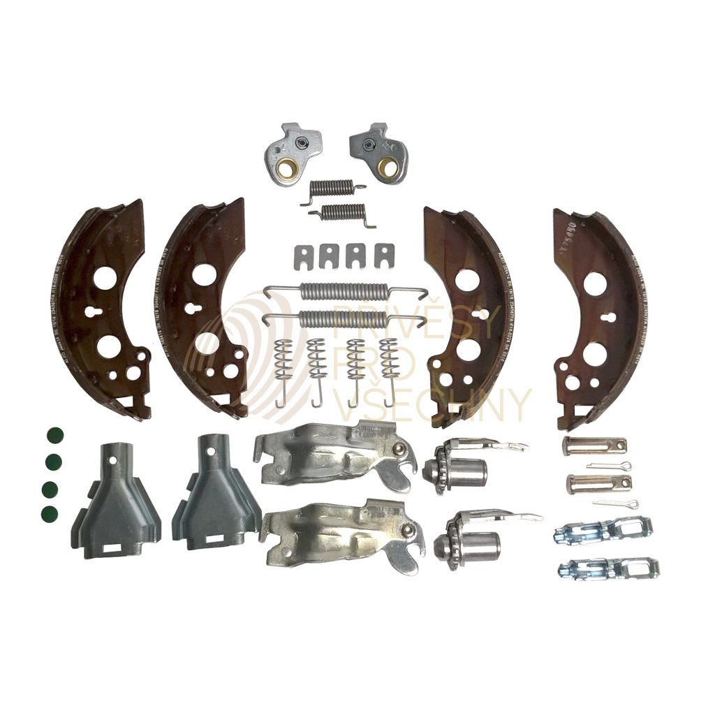 Tzv. velká sada (Set 45) originálních brzdových čelistí AL-KO pro kolové jednotky typ 2051 (kolové jednotky s vnitřním průměrem bubnu 200 mm, šířka čelistí 50 mm) včetně veškerého příslušenství, zejména součástí couvací automatiky.