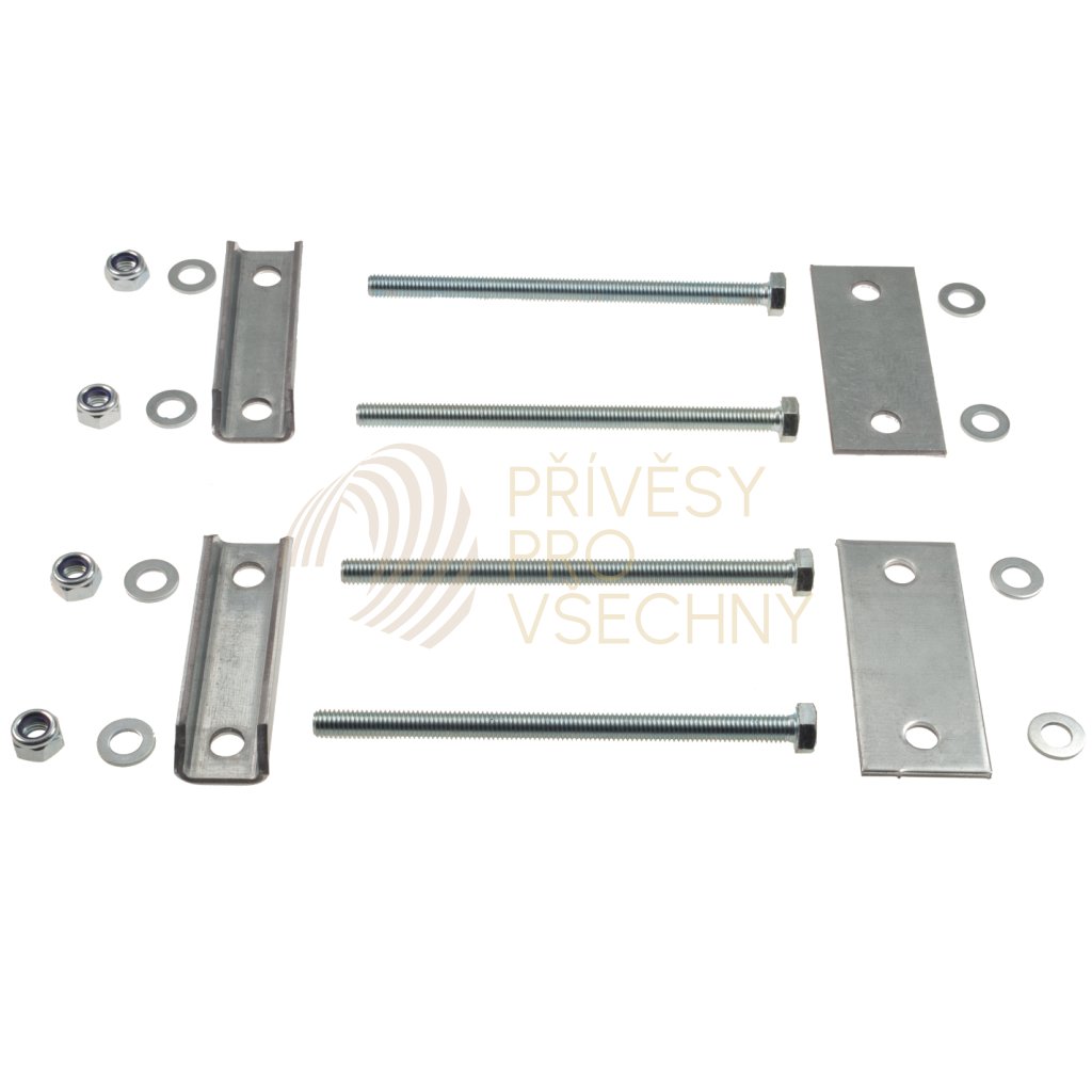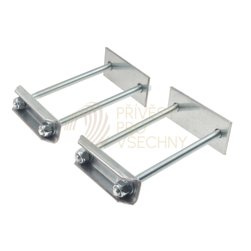 Sada držáků pro montáž boxu na nářadí na V-oj přívěsu. Umožňuje montáž na profil oje o šířce do 60mm a výšce do 100mm. Sada na jeden box obsahuje: