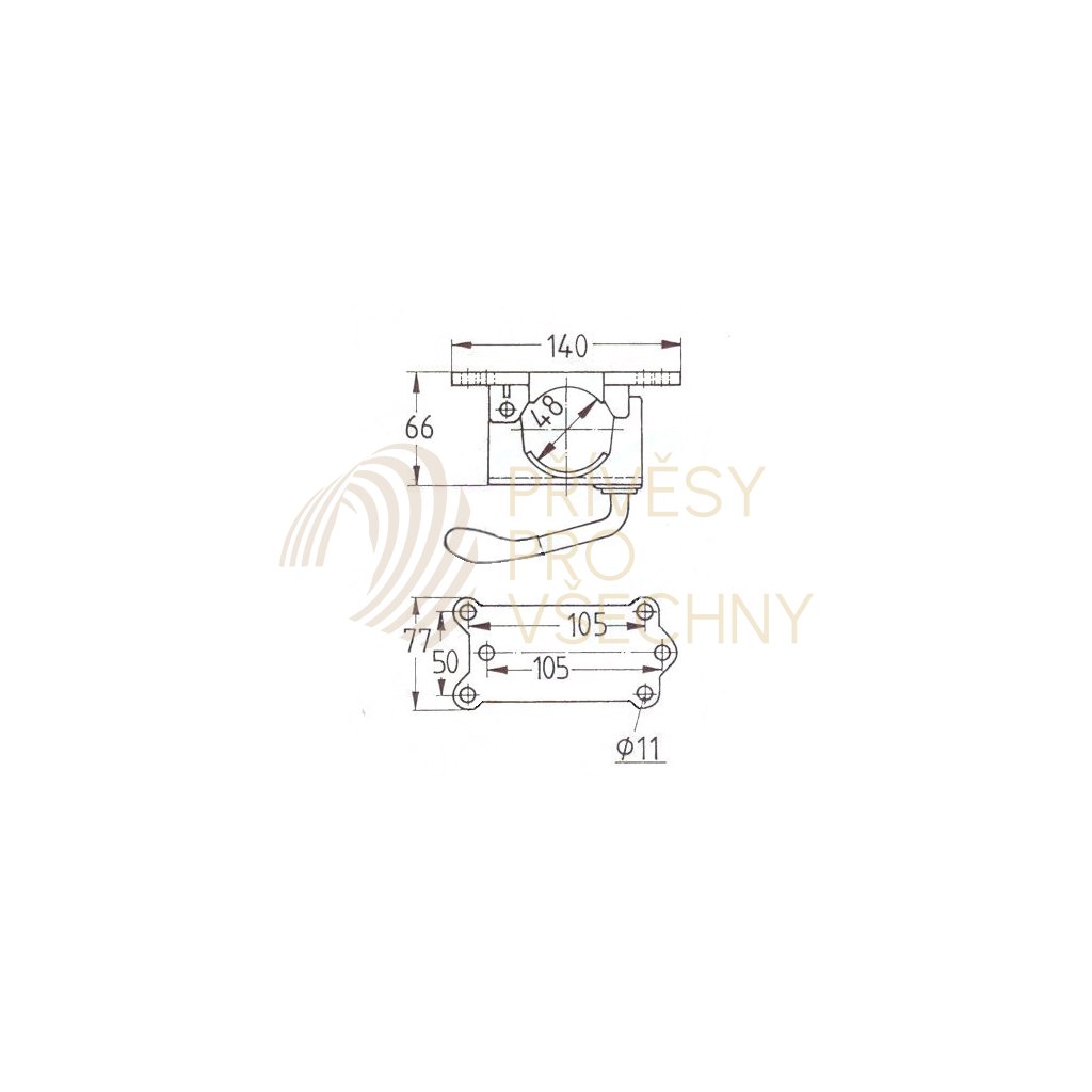 Prakticky rozmístěné otvory v litinové základně držáku umožňují montáž dvěma, třemi nebo čtyřmi šrouby M10. Překlápěcí klička umožňuje dotažení držáku i v místech s nedostatkem prostoru.