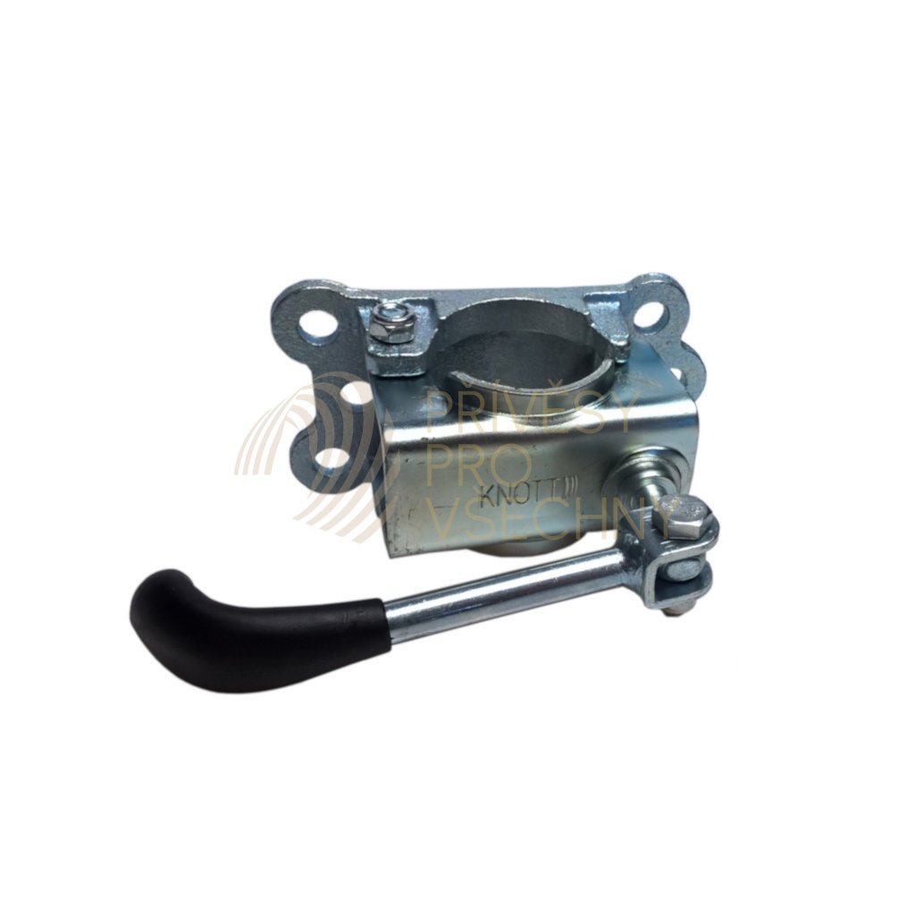 Určeno pro opěrná kolečka a opěrné nohy s průměrem trubky 48 mm.Prakticky rozmístěné otvory v litinové základně držáku umožňují montáž dvěma, třemi nebo čtyřmi šrouby M10. Překlápěcí klička umožňuje dotažení držáku i v místech s nedostatkem prostoru.