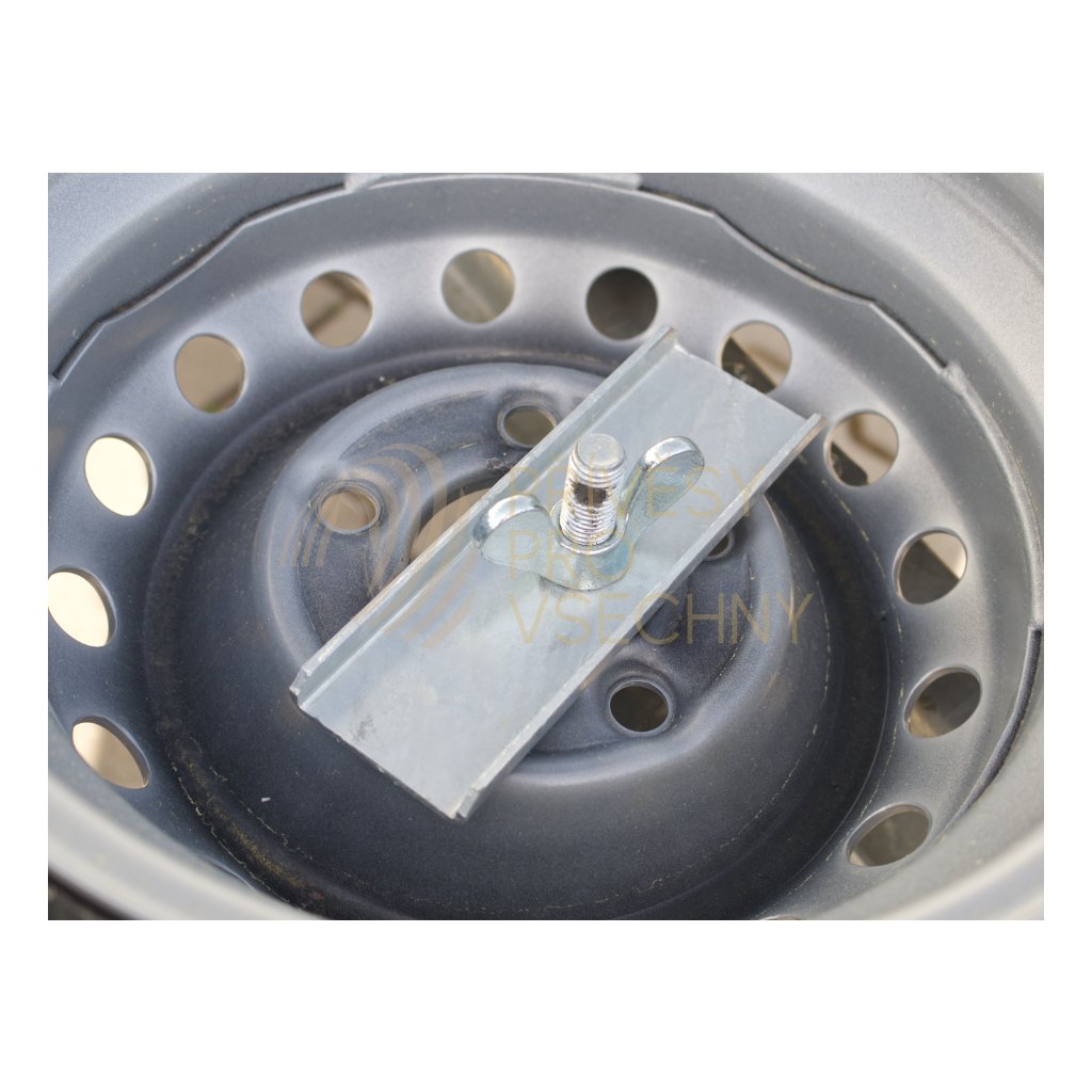 Závit M16 pro upnutí rezervního kola je v horní části opatřen otvorem na zámeček s třmenem 35 mm.