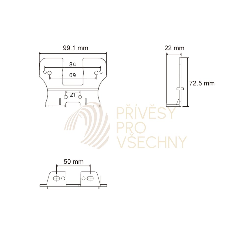 Držák k uchycení obrysových svítilen podvěsem se uplatní všude tam, kde na rámu přívěsu nebo nástavby není dost místa pro umístění svítilny a je jí nutné zavěsit na držák např. pod ložnou plochou. Držák je vyroben z pevného, ale velmi pružného plast plastu, díky čemuž lépe odolává při drobných kolizích např. při parkování. Kompatibilní se svítilnami:
