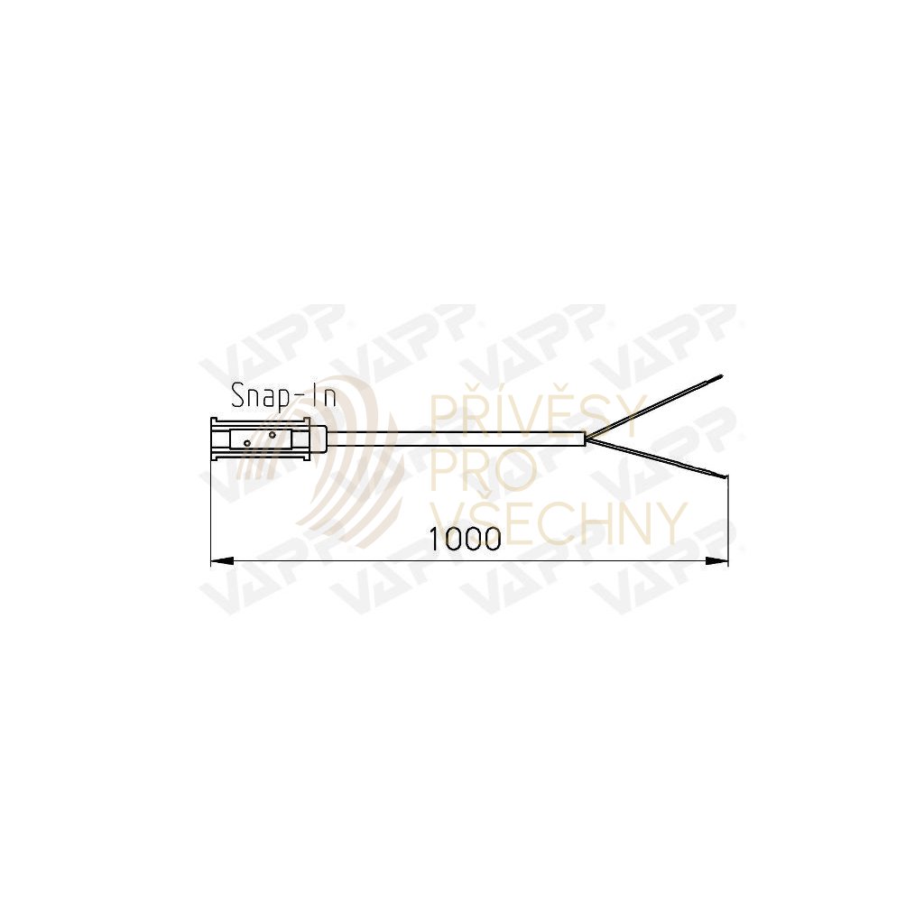 Kabel je na jedné straně opatřen koncovkou SNAP-IN pro snadné připojení do speciální ploché dvoulinky SNAP-IN. Pomocí tohoto kablíku a SNAP-IN protikusu snadno propojíte běžné svítilny na SNAP-IN dvoulinku, aniž by bylo nutné přerušovat vodiče. Na druhé straně je kabel zakončen pouze holými konci jednotlivých linek.