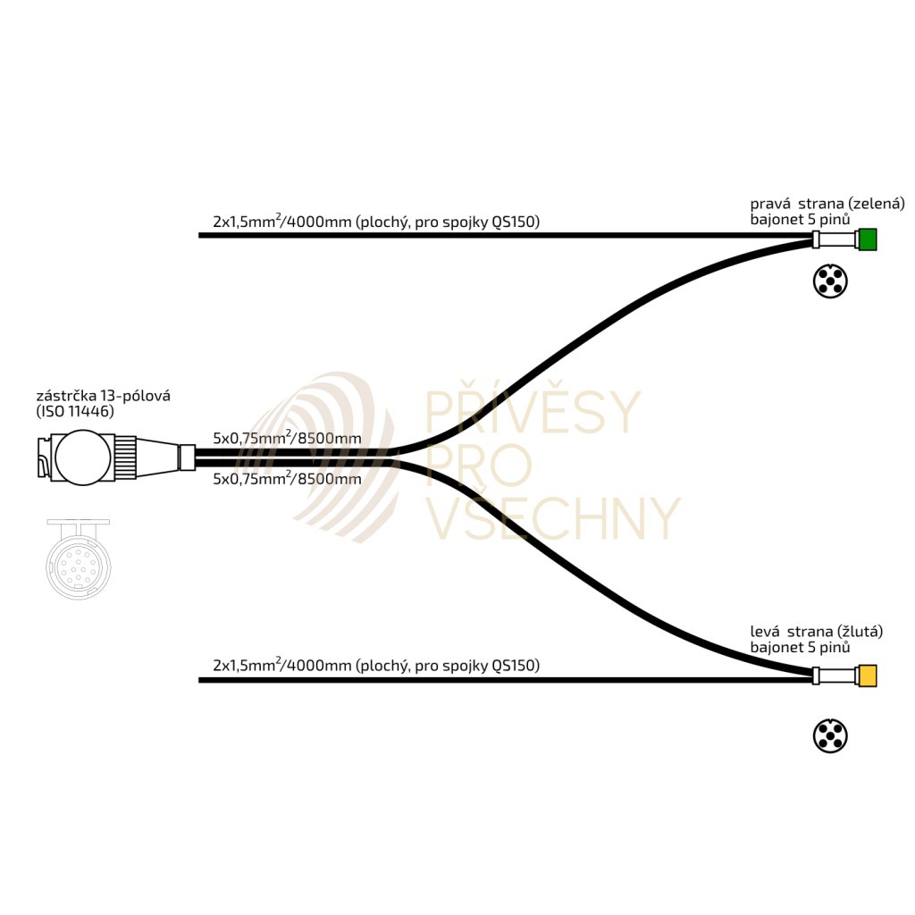 Kabeláž 8,5 m/ 13-pól. zástrčka, s předními vývody QS150, baj5, VAPP (Jokon komp.)