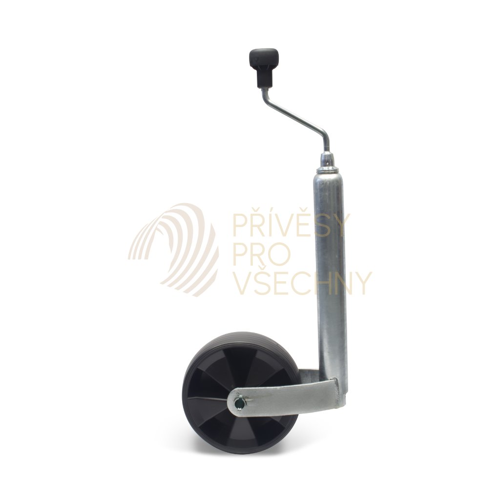 Opěrné pojezdové kolečko Winterhoff určené primárně pro obytné přívěsy. Díky rozšířenému běhounu kolečka nabízí oproti běžným kolečkům pohodlnější manipulaci na trávě či písku, protože se při pojíždění nebozaboří do sypkého podkladu. Noha kolečka je vybavena pohodlnou kličkou. Vhodné pro nebrzděné i brděné přívěsy. Disk kolečka je vyroben z odolného plastu. Vysoké madlo možňuje pohodlný úchop při točení kličkou.