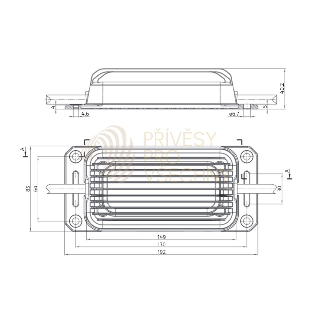 - Kontrol box simuluje zátěž až pro 7 funkcí osvětlení přívěsu (L+P obrys. světlo, L+P blinkr, brzdová světla, mlhovka, couvačka)
