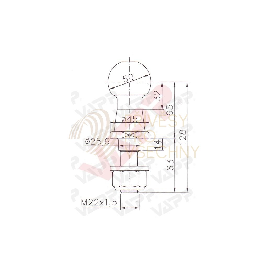 Koule ISO 50 WW KUB/50, pr. 50 mm, 3500 kg, M22x1,5
