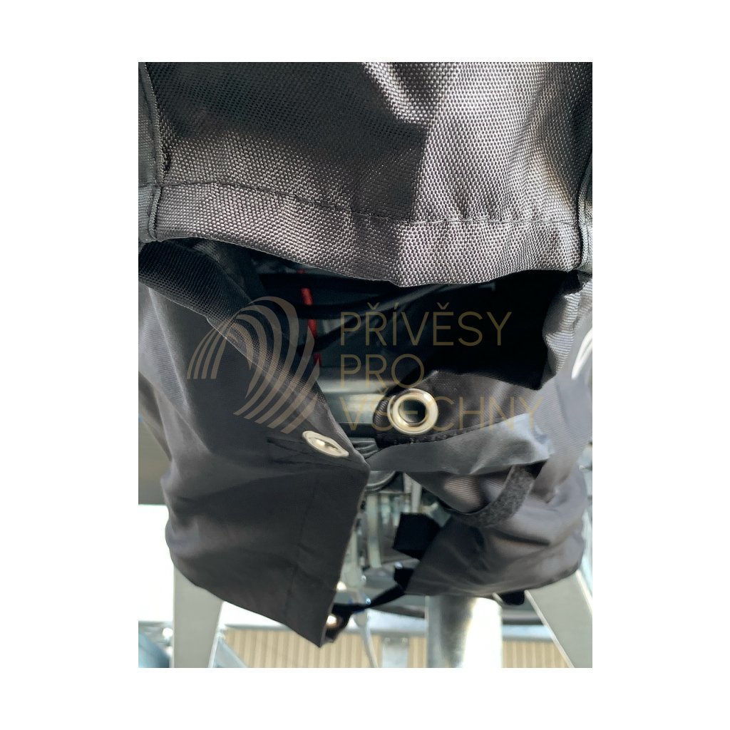 - Kruhy ve spodní hraně umožňují dodatečné zajištění krytu na nájezdové brzdě např. provlečení šňůry nebo gumolana a pod. (Materiál pro dodatečné zajištění není součástí dodávky.)