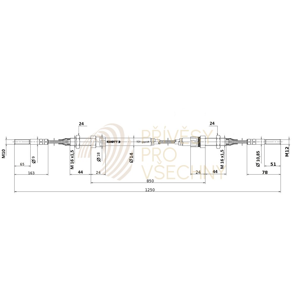 Lanovod brzdový pro KHV KNOTT 850/1250 závit M10-M12
