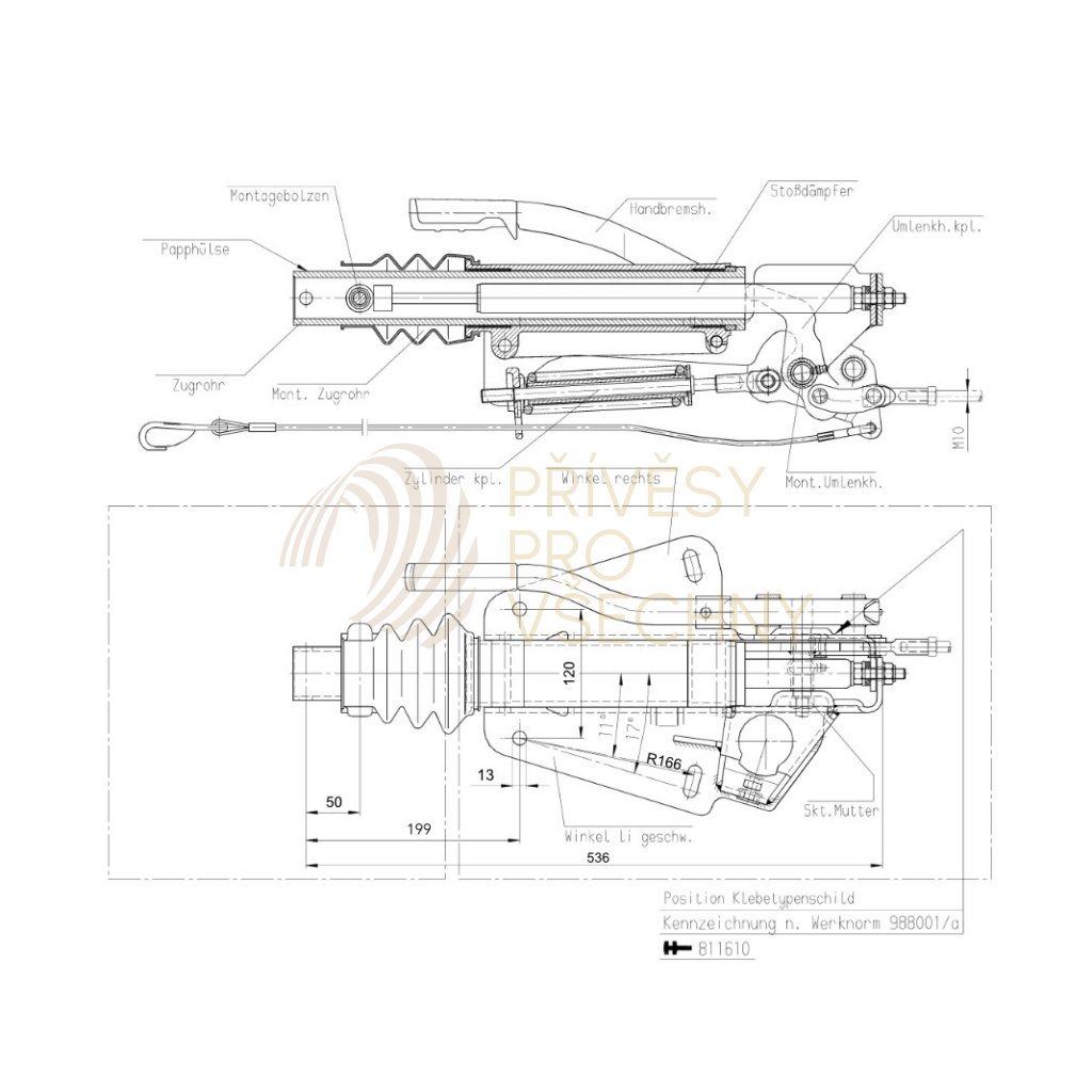 - Tato nájezdová brzda je často používaná na obytných přívěsech v kombinaci s plastovým krytem obj. č. 101904 (není součástí dodávky)
