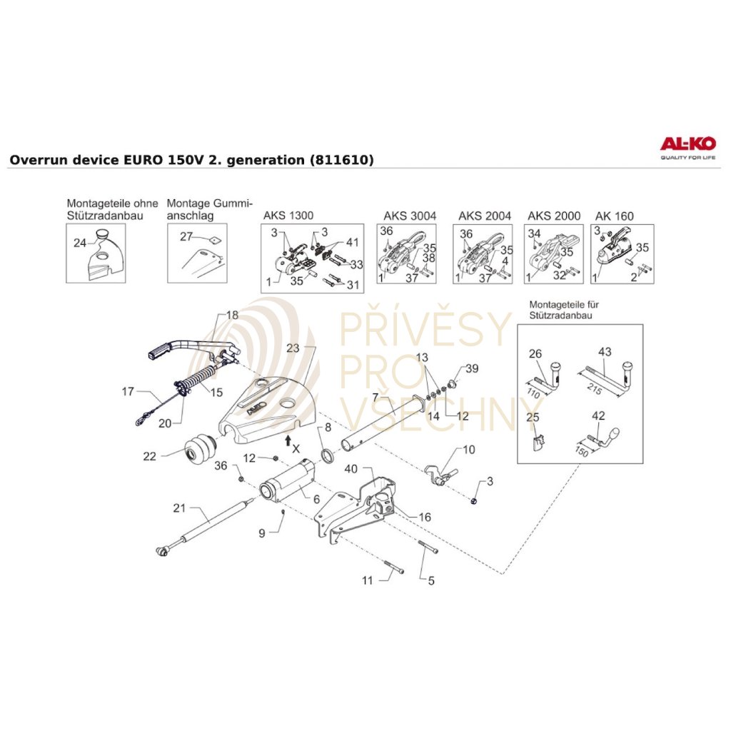 - Brzda je dodávaná bez tažné kulové spojky. Osadit lze tažnou spojku např. AL-KO AK161 nebo stabilizátor AL-KO AKS3004