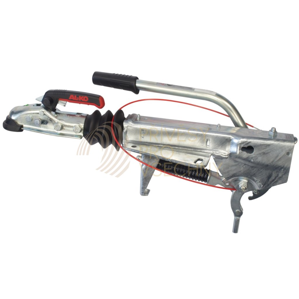 Modernizované provedení nájezdové brzdy AL-KO 161S PLUS. Brzda je dodávána včetně pojistného lanka a tažné spojky AL-KO AK 161.