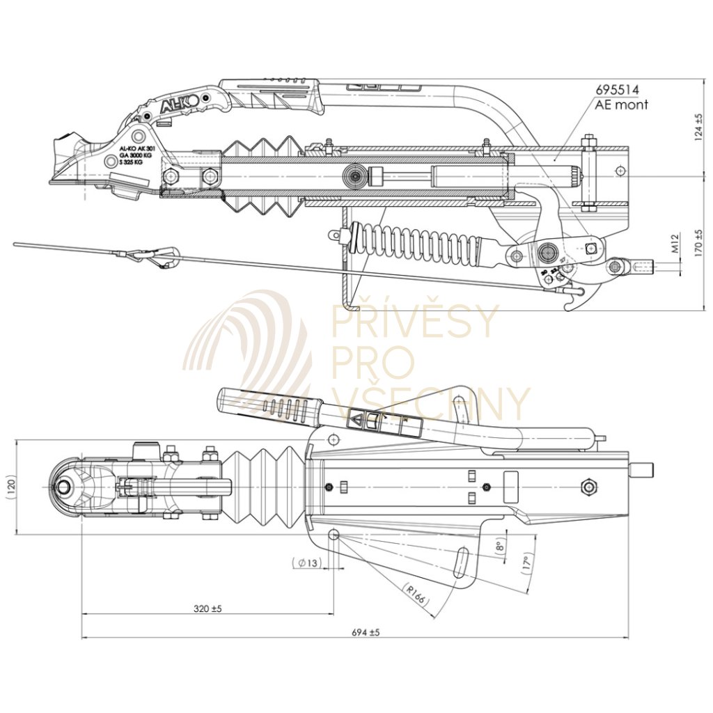 Nájezdová brzda AL-KO 251G PLUS 1550-3000 kg (univerz. montáž) s AK301