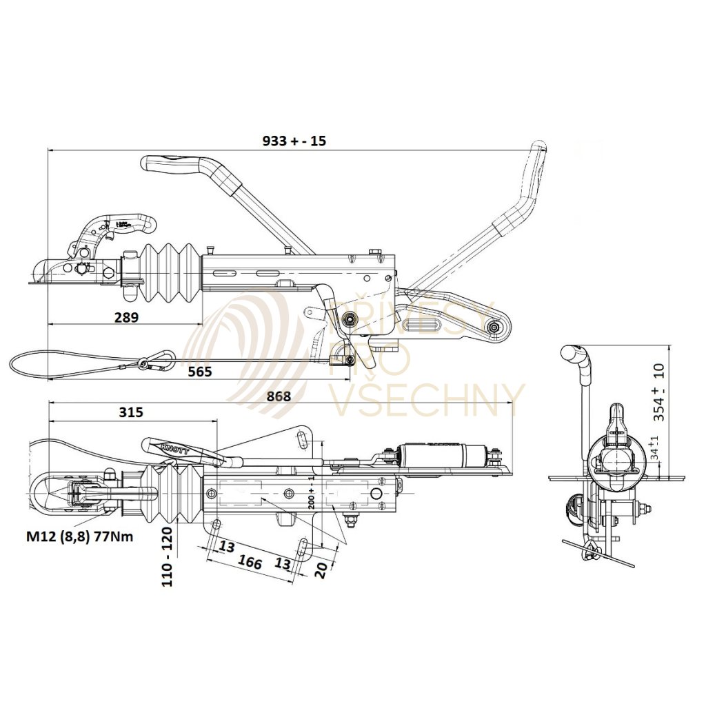 Brzda je dodávána kompletní včetně tažné kulové spojky a pojistného lanka.