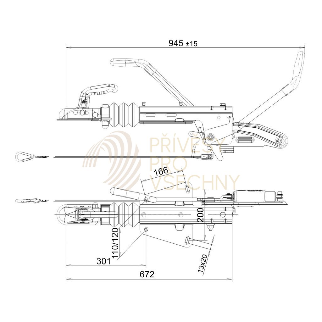 Tato nájezdová brzda je určena pro tzv. horní i spodní montáž na oje tvaru "V".