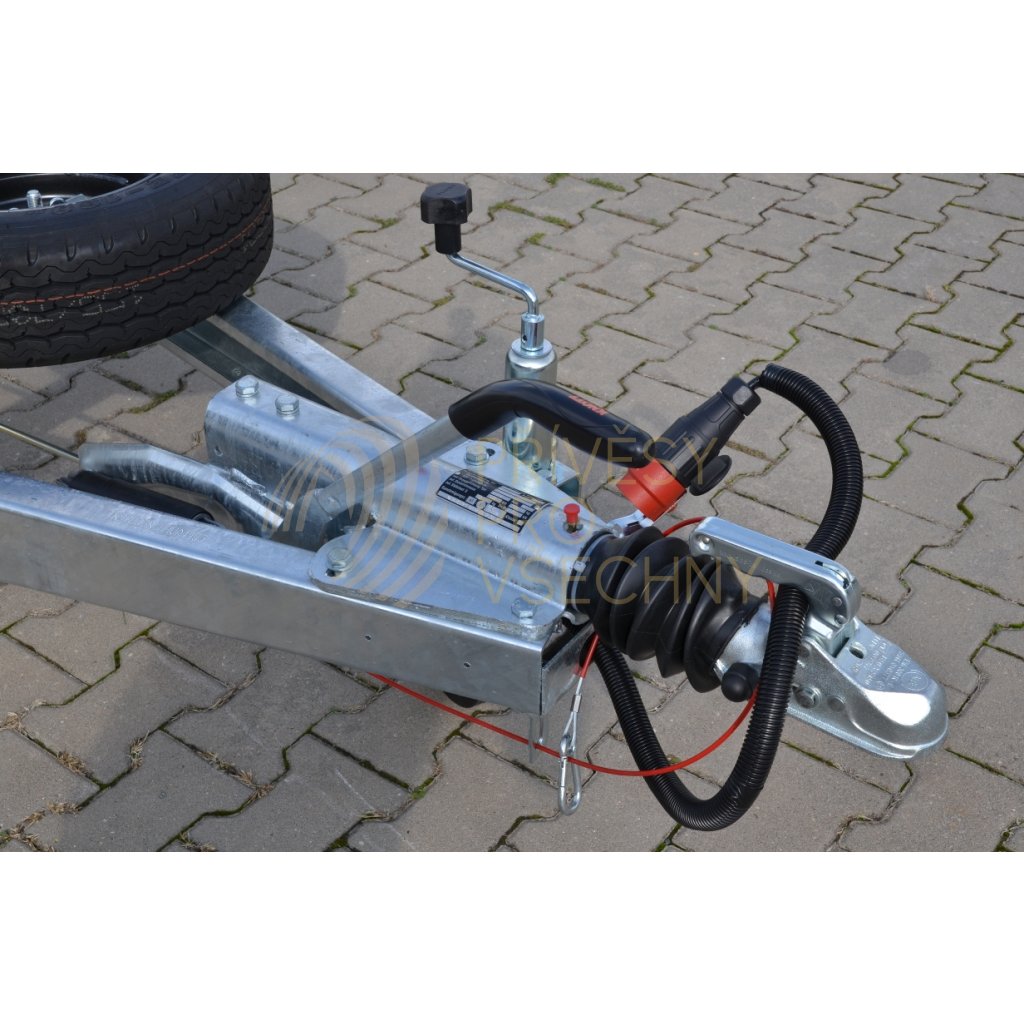 Brzda je dodávána kompletní včetně tažné kulové spojky KNOTT K27-A a pojistného lanka.