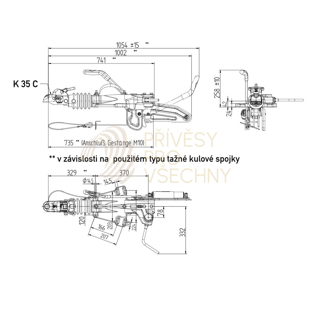 - Brzda je určená pro přívěsy s nejvyšší technicky přípustnou/povolenou hmotností 3500 kg.