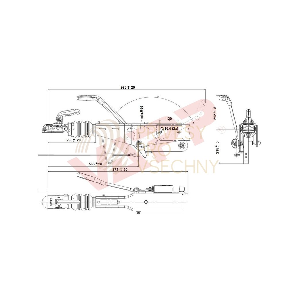 Nájezdová brzda KNOTT KRV20-A KH na jekl 100x100 mm