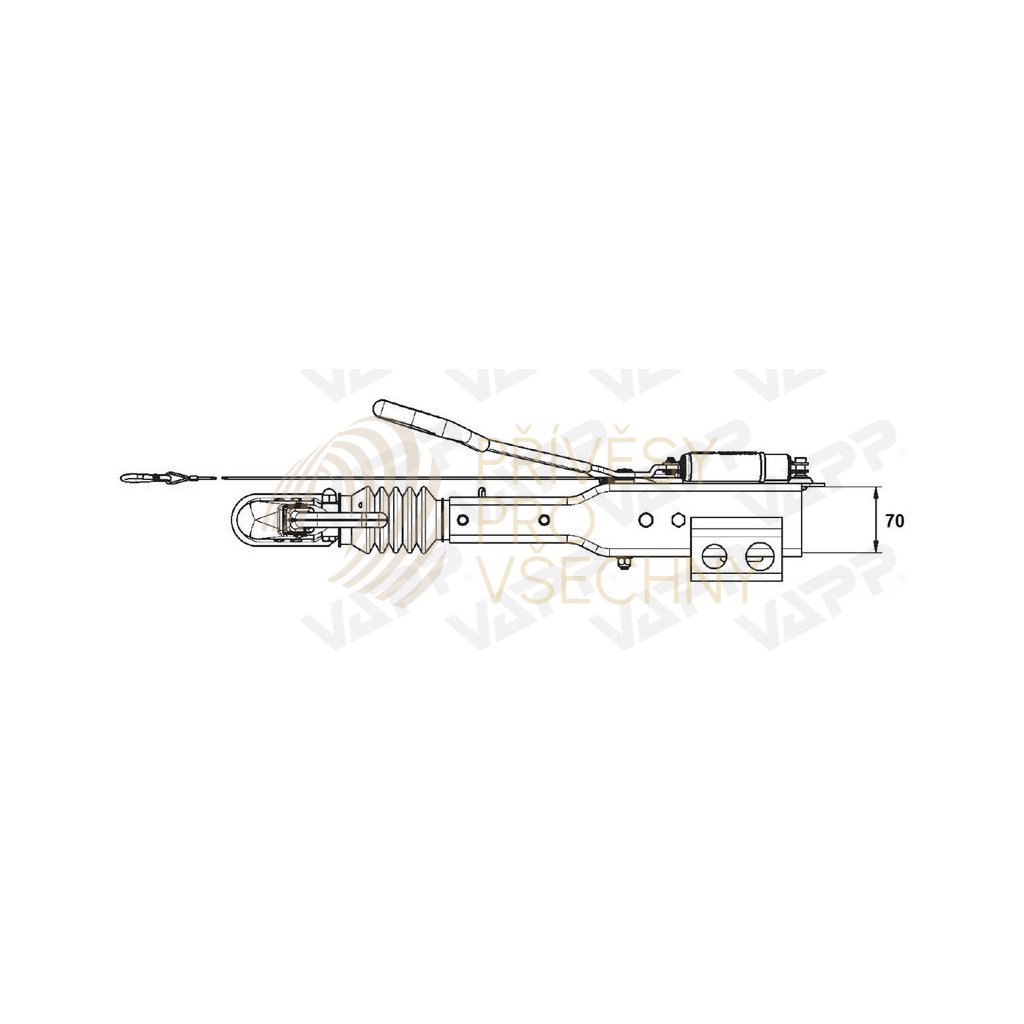 Nájezdová brzda KNOTT KRV 7,5C KH určená pro montáž na jeklovou oj os straně 70 mm. Součástí balení je i adaptér umožňující montáž na jeklovou oj o straně 60 mm.