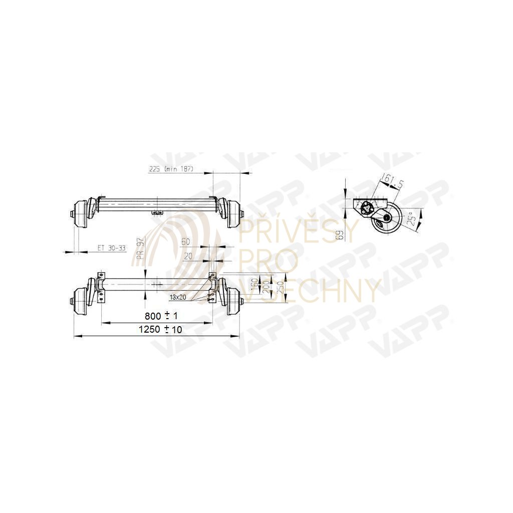 Náprava AL-KO Compact B 1200-6 (1350 kg) a= 800 mm, c=1250 mm, 2051, 112x5