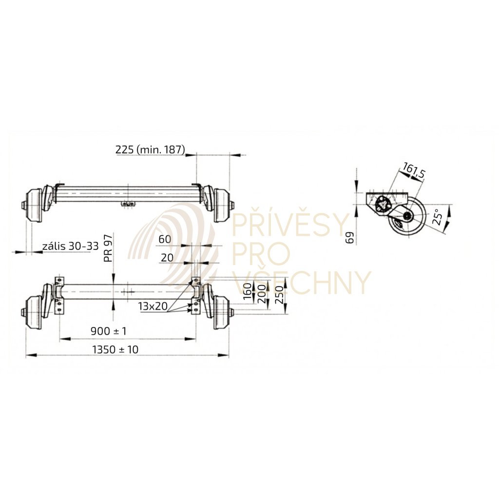 Náprava AL-KO Compact B 1200-6 (1350 kg) a= 900 mm, c=1350 mm, 2051, 112x5