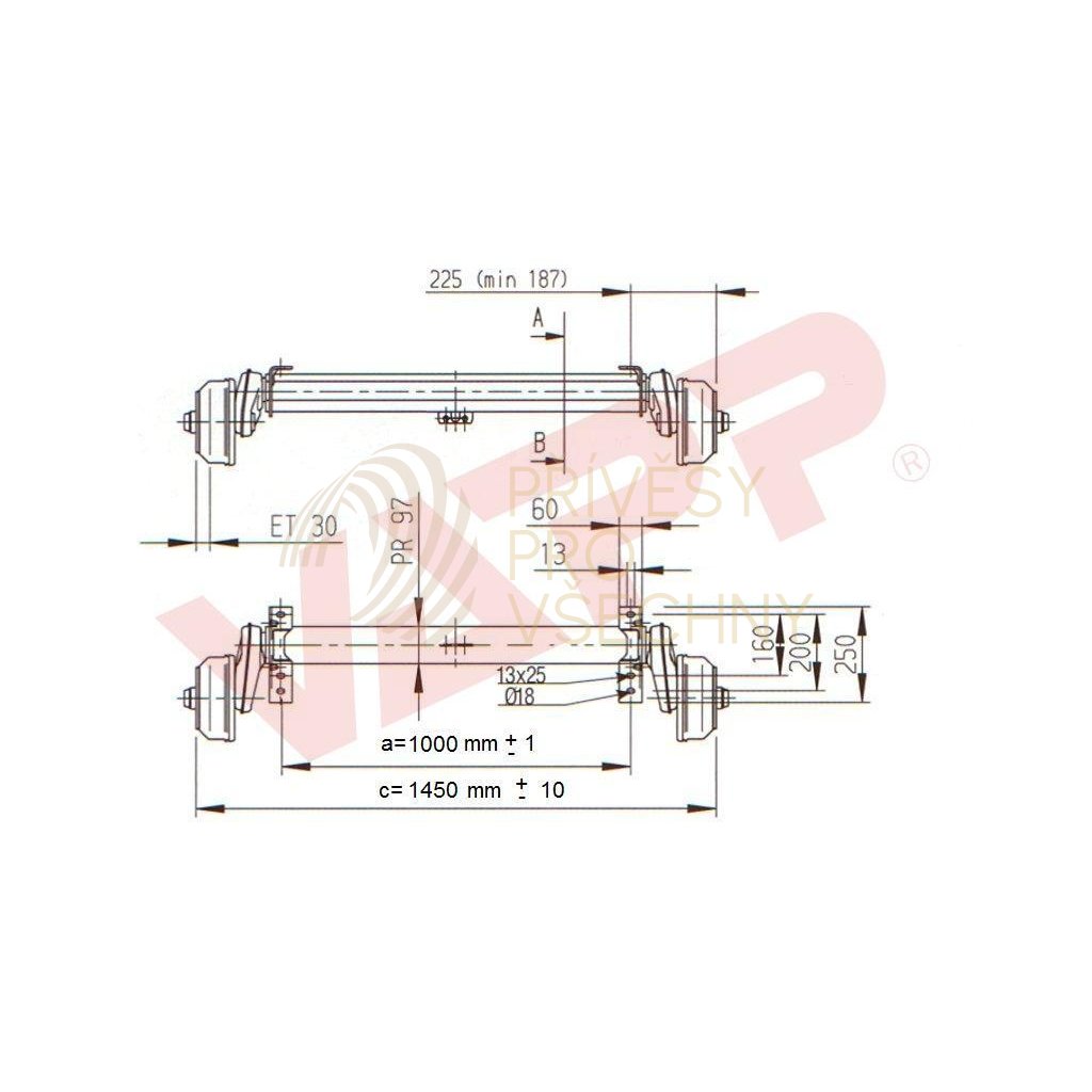 Náprava AL-KO Compact B 1600-3 (1500 kg) a=1000 mm, c=1450 mm, 2051, 112x5