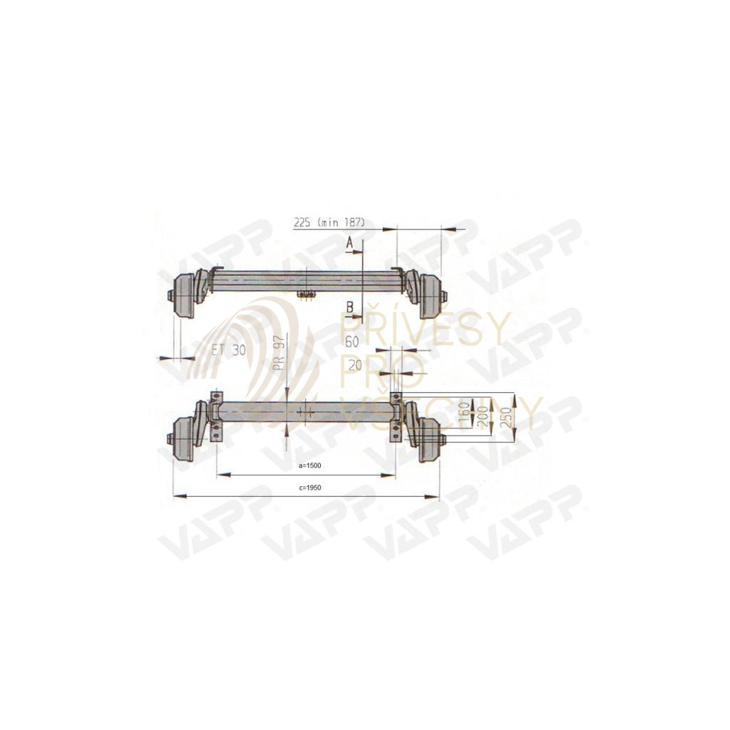 Náprava AL-KO Compact B 1600-3 (1500 kg) a=1500 mm, c=1950 mm, 2051, 112x5