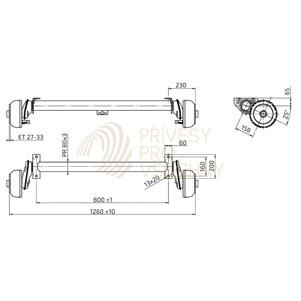 Náprava AL-KO Compact B 850-10 (1000 kg) a= 800 mm, c=1260 mm, 2051, 100x4
