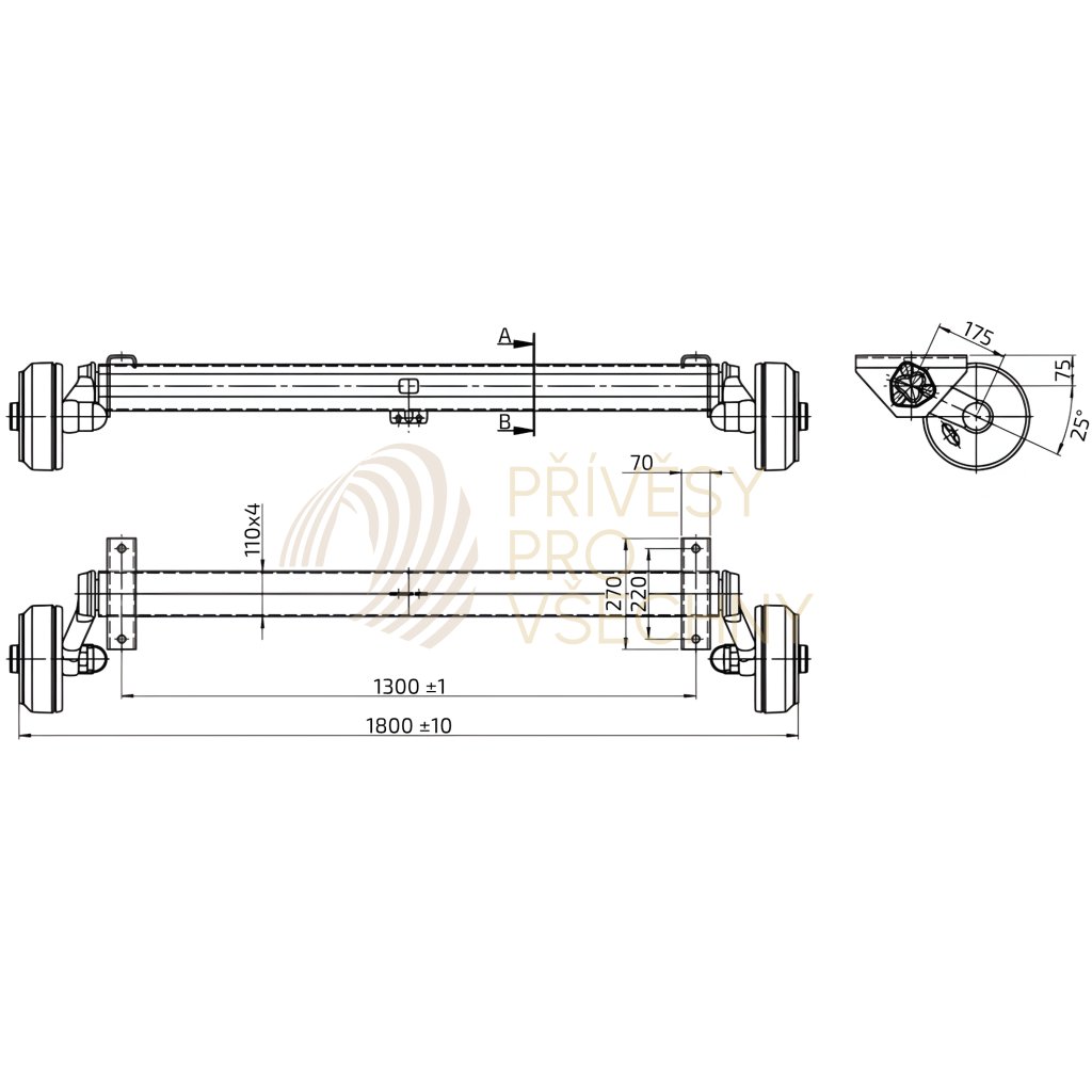 Náprava AL-KO Plus B 1800-9 (1800 kg) a=1300 mm, c=1800 mm, 2361, 112x5