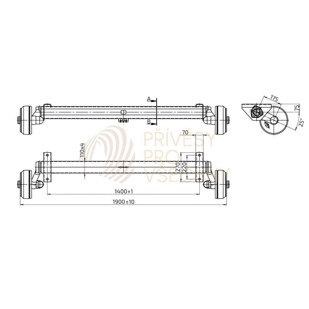 Náprava AL-KO Plus B 1800-9 (1800 kg) a=1400 mm, c=1900 mm, 2361, 112x5