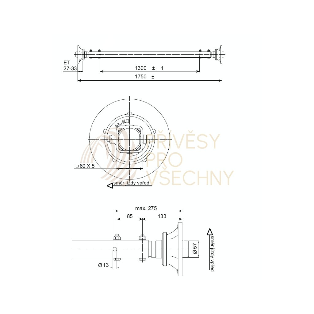 Náprava AL-KO Starr Plus LS (1500kg) a=1300 mm, c=1750 mm, 112x5