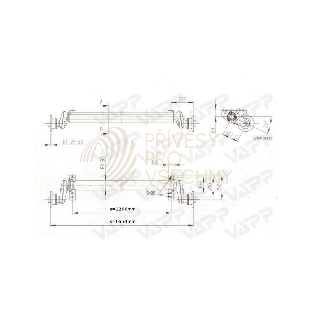 Náprava AL-KO UBR 1200-5 (1300 kg) a=1200 mm, c=1650 mm, 112x5, patky 90