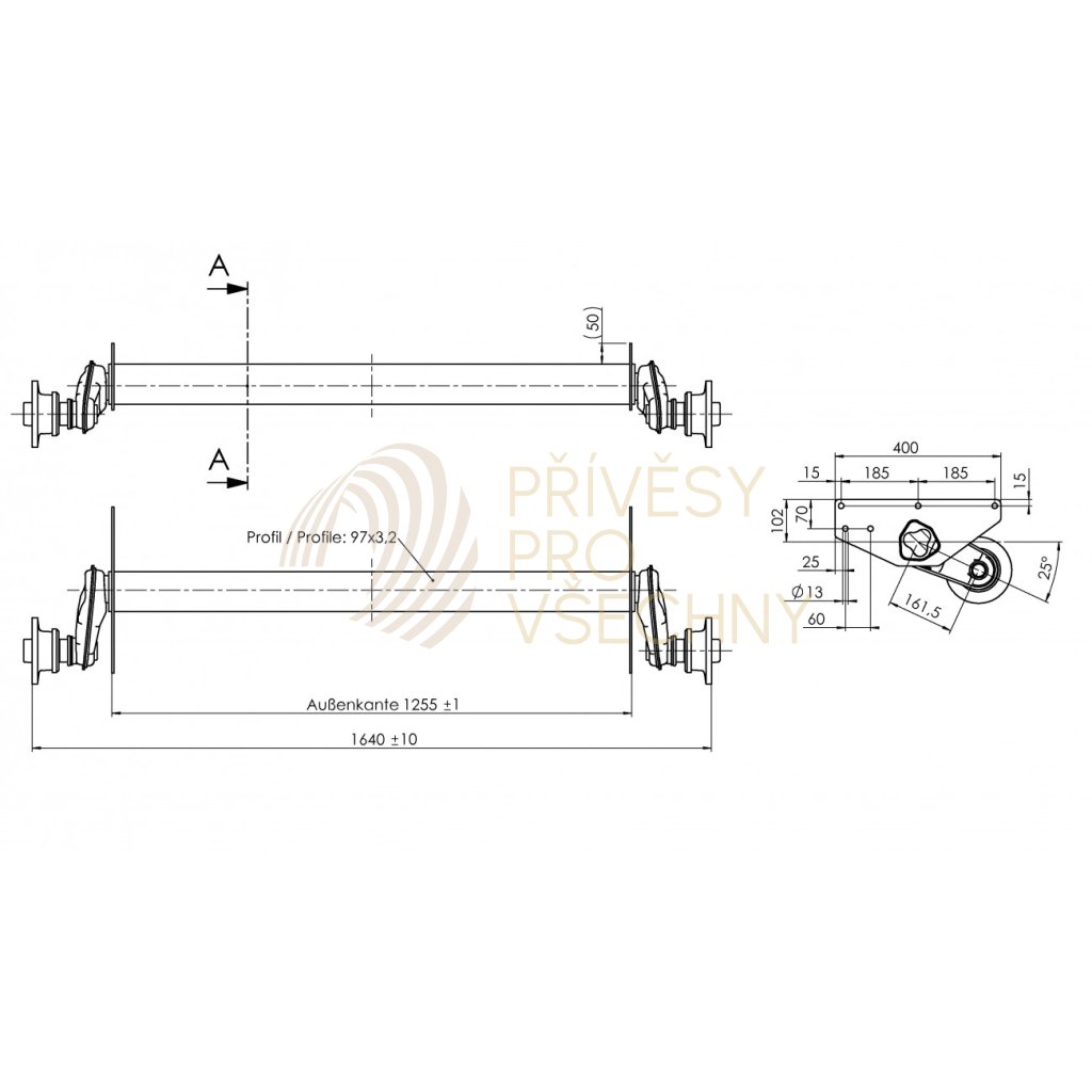 Náprava AL-KO UBR 1200-5 (1300 kg) a=1255mm, c=1640 mm, 112x5, (Maro)