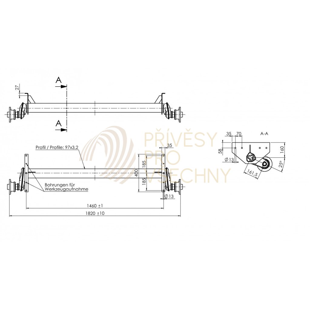 Náprava AL-KO UBR 1200-5 (1300 kg), a=1460 mm, c=1820 mm, 112x5 (Sacher)