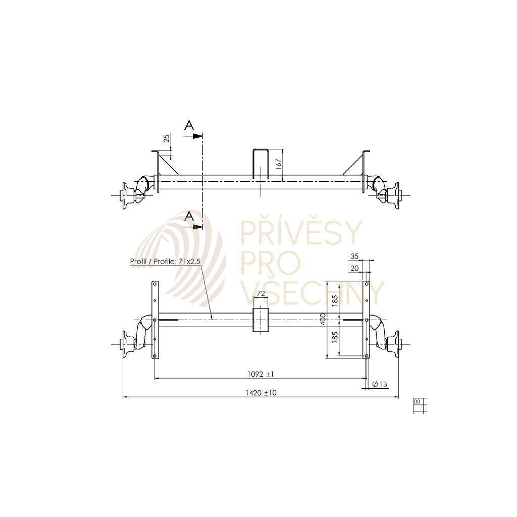 Náprava AL-KO UBR 700-5 (750 kg) a=1092 mm, c=1420 mm, 100x4, patky 159 (Agados,Vezeko)