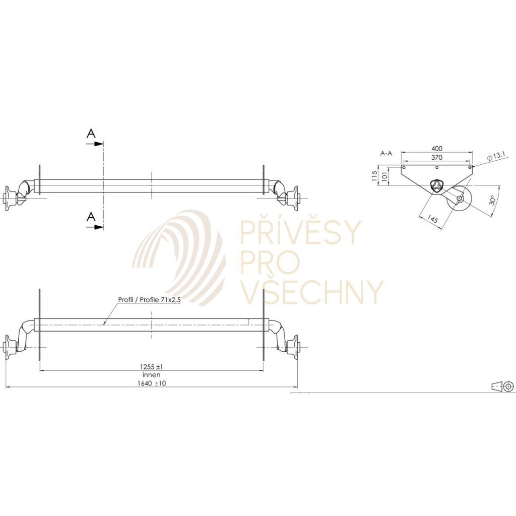 Náprava AL-KO UBR 700-5 (750 kg) a=1255 mm, c=1640 mm, 100x4, patky 115 (Maro)