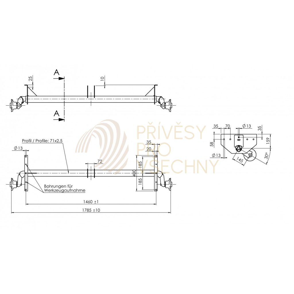Náprava AL-KO UBR 700-5 (750 kg) a=1460 mm, c=1785 mm, 100x4, (Sacher)