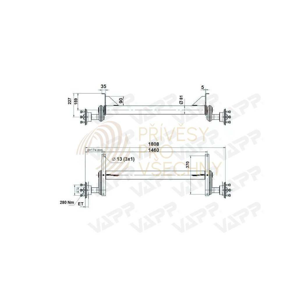 Náprava je dodávána bez kolových šroubů. Vhodný typ šroubů, dle dosedací plochy disku, naleznete v souvisejícím zboží.