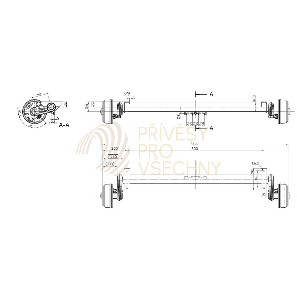 Náprava KNOTT GB 13 (1350 kg) b= 800 mm, c=1250 mm, 200x50, 112x5