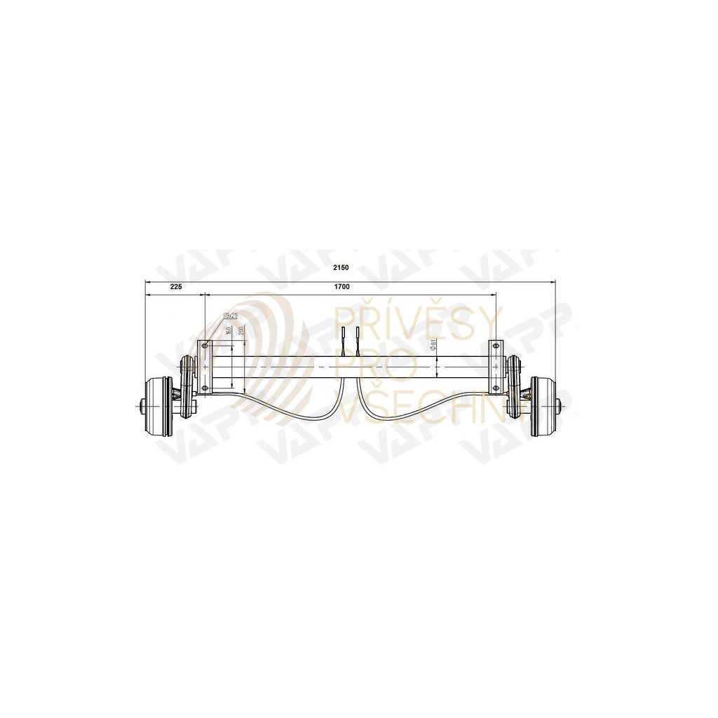 přívěsu lepší stabilitu na vozovce. Náboje jsou osazeny kompaktními bezúdržbovými dvouřadými kuličkovými ložisky s kosoúhlým stykem. Těleso nápravy je žárově pozinkováno. Použité kolové brzdové jednotky jsou vybavené couvací automatikou Backmat. Náprava je dodávána kompletní včetně osazených a seřízených kolových jednotek, včetně brzdových bubnů.