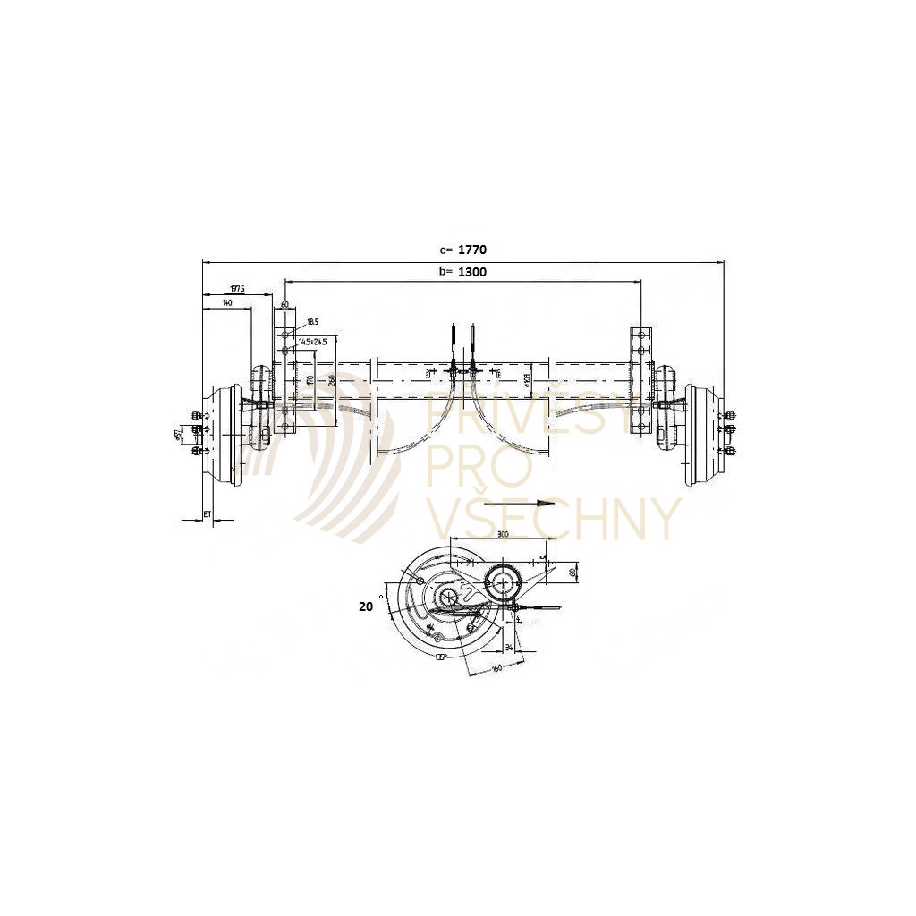 Náprava KNOTT GB 18 (1800 kg) b=1300 mm, c=1770 mm, 250x40, 112x5 + ANS